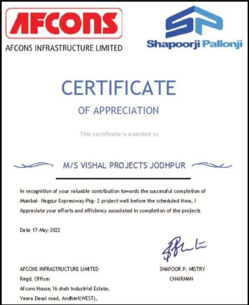 | 3 | Mumbai–Nagpur Expressway Pkg-2 (Village Khadki to Amagaon) | AFCONS | 14,56,00,000.00 | Wardha (MH) | Roads |